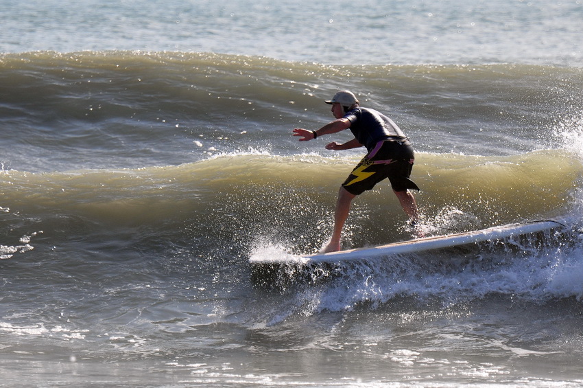 This page is dedicated to "Almost Toes on the Nose" Ross, a regular at local breaks from Port Canaveral to Melbourne Beach. Watch out - this guy is totally deaf and nearly blind without his glasses. Ross rides an 8'0" NuWave SUP (without a paddle) or a 9'9" NuWave SUP (with a paddle). As you may have guessed, his current board sponsor is NuWAVE SUP. Rumors indicate that the name "Almost Toes on the Nose Ross" stems from a psychological block that prevents him from going those last few inches forward to actually get his toes over the nose. Says Ross: "It's pretty scary up there when you look down at 20 mph and don't see any surfboard underneath you." Ross often surfs at local area contests just to the north or south of the contest area. In a recent interview Ross claimed: "Although I have never won a trophy, I have never heard them ask me to leave the area either." Ross is best known for perpetually spouting HOT AIR about upcoming surf conditions.